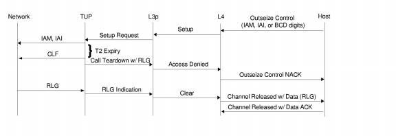 An outgoing call is initiated by the host with the Outseize Control message. The Excel platform will accept address data as either BCD-encoded digits or in an SS7 TUP Formatted Fields ICB. The Outseize Control message drives L4 into an outseize state and an outseize request is sent to L3P TUP. |