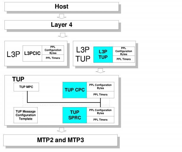 L3P TUP translates the L4/L5 event into an TUP event. Any fields sent from L4/L5 are concatenated with pre-stored field data in the PPL Configuration Bytes. |