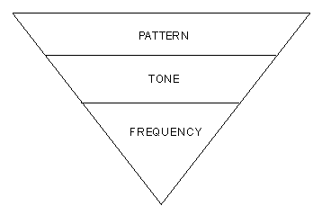 A tone pattern is formed when tones are combined, with specific intervals of silence between them. For example, the industry-standard "call waiting tone" is actually a pattern, in which Tone 1 is on for 300 milliseconds, off for 9700 milliseconds, and on again for 300 milliseconds. You can think of a call progress tone pattern as being at the top of a hierarchy, with tone in the middle and frequency at the bottom. That is, one or more frequencies make up a tone, and one or more tones make up a pattern.