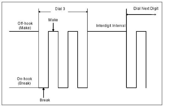 Dial Pulses are defined as momentary open loop signals, generated by sending a break (on-hook pulses) separated by a make (short off-hook pulses), representing the digits of the address.