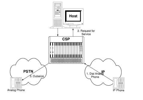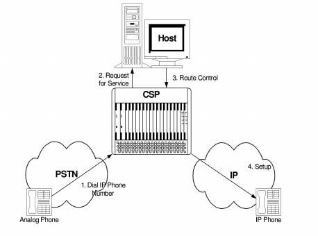 1. A caller with a traditional analog telephone dials the number of an IP telephone.