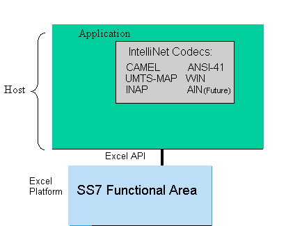 The IN and wireless application and codecs reside on the host computer using the SS7 services of the Excel platform.