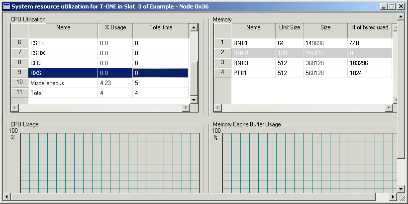 The System resource utilization... window opens. The next screen shot provides some example data showing CPU utilization, CPU usage, memory and memory cache buffer usage. Use the scroll bars to view more of the information.