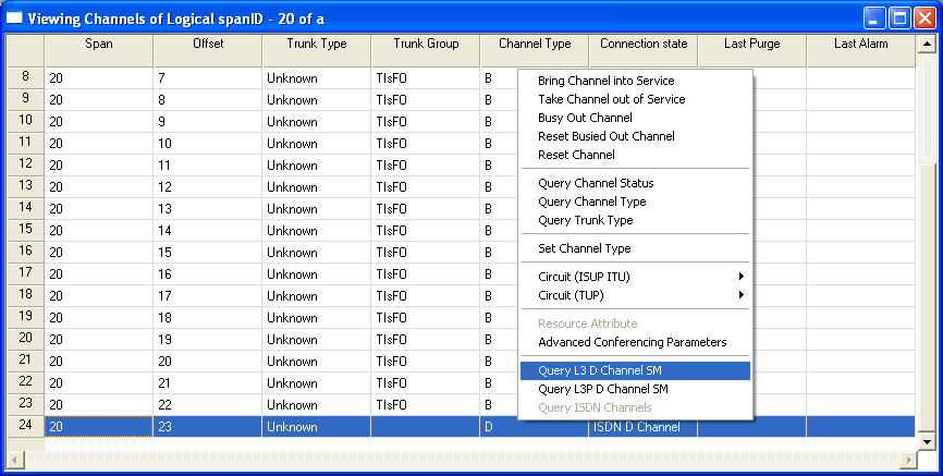 You are here: SwitchKit CSA User’s Guide > 7 System Provisioning and Monitoring > Querying ISDN D Channels