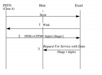 4. Reports the incoming call with the Stage 1 digit buffer and channel ID in a Request For Service With Data message sent to the host