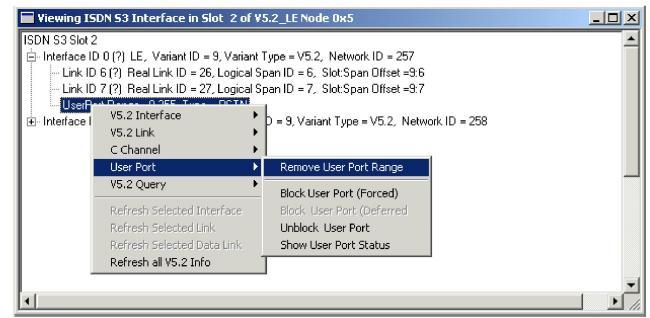 This procedure describes how to block and unblockV5.2 links and user ports.
