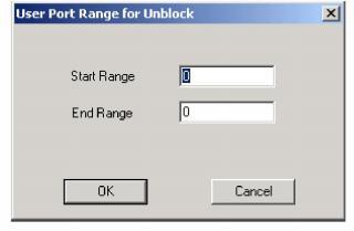 4 Enter the Start Range and End Range of the user port range you want to block. Click OK.
