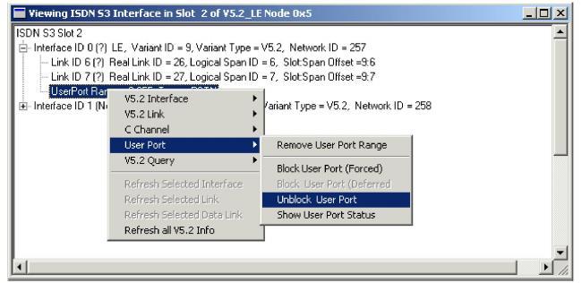 2 Right-click the link and select User Port® Unblock User Port as shown in the next screen shot