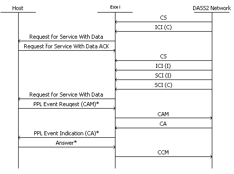 The above call flow shows the sequence for two scenarios for Request for Service With Data.