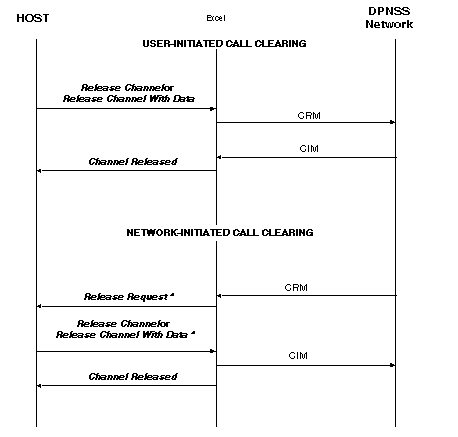 The following call flows depict a Network-Initiated DPNSS Clear Request Message and a Host Initiated DPNSS Clear Request Message.