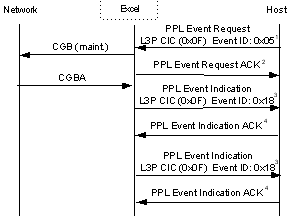 3. Upon successful completion of the maintenance blocking procedure, the CSP alerts the host by sending a PPL Event Indication message. The PPL Event Indication will include an SS7 Parameters ICB containing parameters from the BLA. The host should not initiate any outgoing call without first sending a PPL Event Request message of Maintenance Unblock.