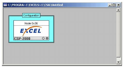 The configuration global view is opened by selecting the menu, File®New Configuration. This view displays an icon of a node that is not yet configured. To start configuration of the node, you must right-click on the icon and select Add New Node from the pop-up menu.You are then prompted to configure the IP addresses, logical node ID (valid range is: 0-254.), and node type.