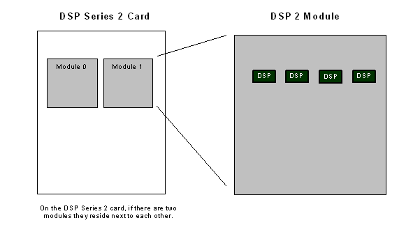 The DSP Series 2 card comes with either one or two DSP 2 Modules with four DSPs each, for a maximum of eight DSPs per card.