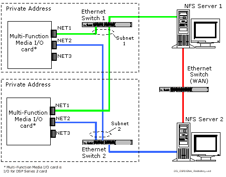 • For each I/O card, if you wanted to use all three Ethernet ports, you would need three Ethernet switches and NFS servers.