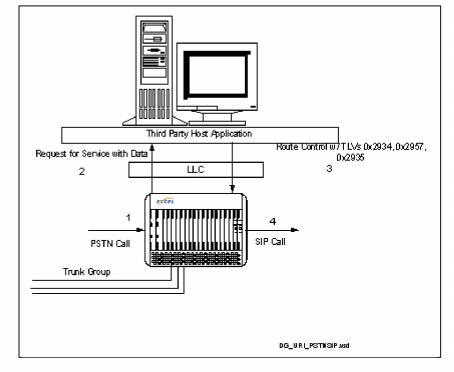 This section shows calls in a network architecture where the host application controls a SIP/PSTN gateway. Each figure in this section is followed by the steps and message traces to further explain the process.