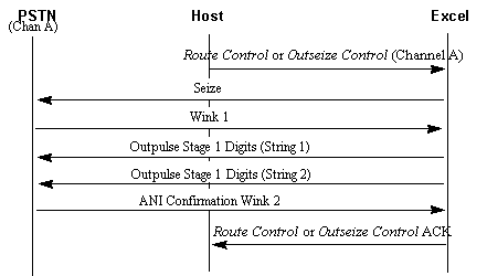 The example call shows the host instructing the CSP to initiate an outbound call with E&M Wink Start signaling. Using the Outseize Control message, the host can have varying degrees of interaction with the CSP. The host can send each instruction separately, use a list of instructions preprogrammed on a channel with the Outseize Instruction List Configure message, or a combination of both.