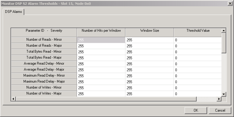 Go to the node view, select Monitor Alarm Thresholds. The Monitor DSP S2 ... window opens. See the next screen shot.