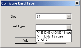 3 For the Card Type, select (V) VDAC, (V) E ONE /J ONE 16 Span, or (V) T ONE 16 Span from the drop down list.