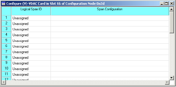 7 Right-click the label of the virtual card that you are configuring and select Span Configuration from the drop-down list. A dialog box similar to the one in the next screen will open: