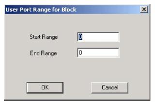 4 Enter the Start Range and End Range of the user port range you want to block. Click OK.