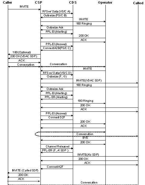 Example: A directory assistance operator is located behind a TDM switch. The initial conversation between the operator and called party is bearer-switched through the CSP. Later, the operator drops out of the call flow while connecting the calling party and the called party bypassing the bearer path from the CSP.