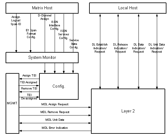 The figure below shows the messages and tasks for enabling Layer 2, the TEI management messages, and the interface to the host. All
