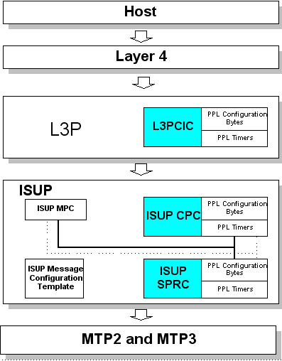 L3P CIC translates the L4/L5 event into an ISUP event. Any parameters sent from L4/L5 are concatenated with pre-stored parameter data in the PPL Configuration Bytes. |