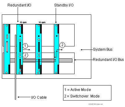 Voice and data on the Redundant J-ONE I/O card are switched to the Redundant I/O bus and routed to the Standby I/O where they are switched to the system bus and routed to the Standby line card. |