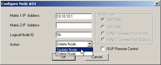 2 To update the node, you may enter a new IP address, logical node ID or node type. Then click OK.