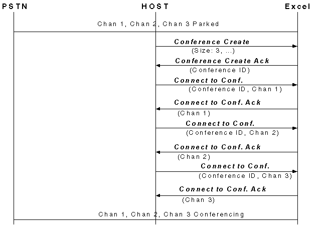 2. After this Acknowledgment, Channels 1, 2, and 3 are conferencing.