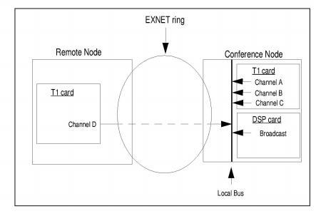 • The conference node has available CSP conferencing timeslots to the remote channel onto its local bus.