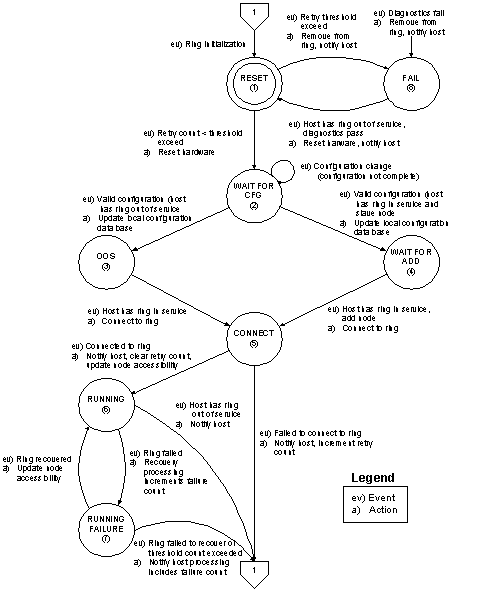 3. OUT OF SERVICE (OOS) - If the host has the ring out of service, the ring state machine waits in this state until the host brings the ring in service.