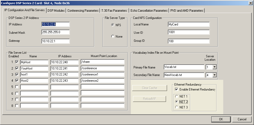 You are here: SwitchKit® Development Environment - CSA User’s Guide > 6 Configuring Resource Cards > Configuring a DSP Series 2 Card