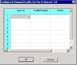 5 Click OK to close the Configure D Channel Facility List dialog box and to return to the Configure ISDN dialog box.