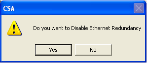 The next dialog box confirms that Ethernet Redundancy is disabled.