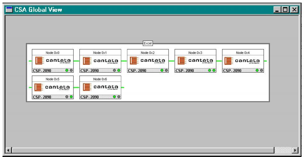 1 Go to the CSA Global View. You will see green lines connecting the icons of the nodes. See the next example screen shot.