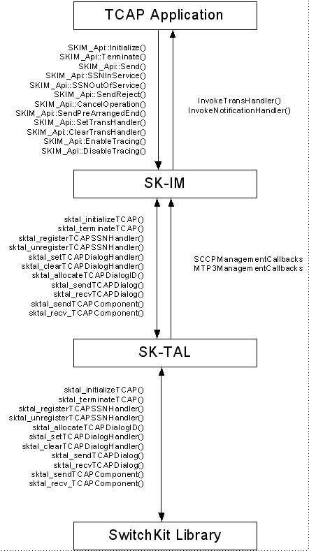 You are here: SwitchKit® Development Environment - TCAP Interface User’s Guide > 1 Introduction to SwitchKit® Development Environment TCAP Interface API > SKIM and SKTAL API