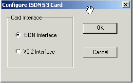 The Configure ISDN S3 Card dialog box opens with the ISDN Interface selected by default:
