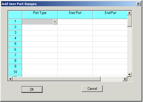 11 Select the Port Type from the drop-down list. Enter the Start Port and End Port. Click OK.