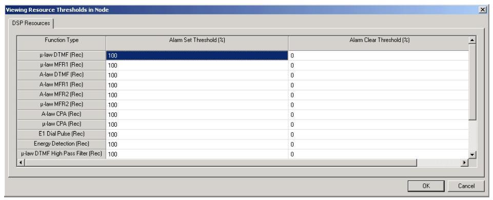 Viewing Resource Thresholds on DSP card