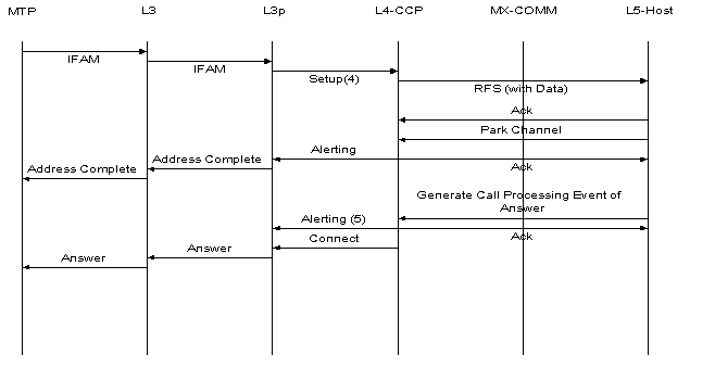 The following is a call flow diagram in which a successful call is originated from the host. All address digits are present in the Outseize Control message, therefore an IFAM is issued to the lower layers.