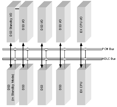 The DS3 card resides in a line card slot and routes data on the midplane buses (HDLC and PCM). The diagram below shows how the DS3 card integrates into the CSP architecture.
