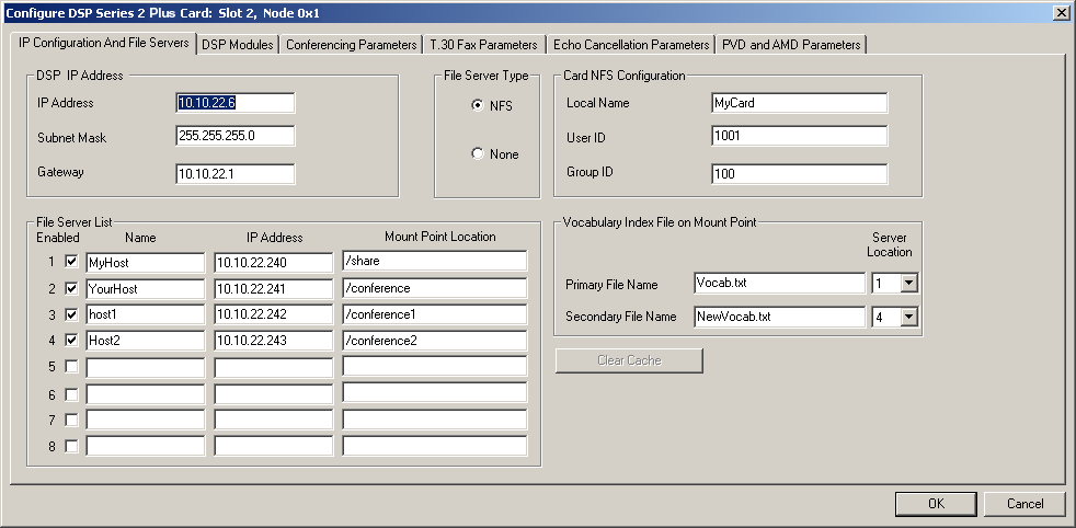 You are here: SwitchKit CSA User’s Guide > 6 Configuring Resource Cards > Configuring a DSP Series 2 Plus Card