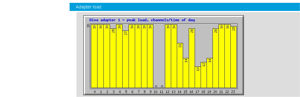 The Dialogic® Diva® Statistics Viewer analyzes the call history files found in the /var/log directory and creates various statistics based on these files. The statistics show the total number of calls related to various periods of time, the ratio of incoming and outgoing calls, the ratio of call types, call duration charts, a peak board load chart, etc.
