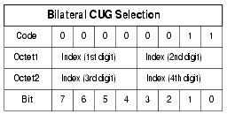 The index number to the bilateral closed user group selected for the virtual call is in the form of four decimal digits. Each digit is coded in a semi-octet, in BCD. The high and low nibbles of the first octet of the parameter field represent the first and second digits. The high and low nibbles of the second octet represent the third and fourth digits, respectively.