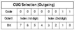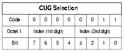 The index number to the closed user group selected for the virtual call is in the form of two decimal digits. Each digit is coded in BCD, in a nibble of the parameter field. The high nibble represents the first digit and the low nibble represents the second digit.