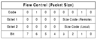 The packet size for transmissions from the remote DTE is shown in the low nibble of the first octet in the parameter field. The packet size for transmissions from the local DTE is indicated in the low nibble of the second octet. The high nibble of each octet must be zero.