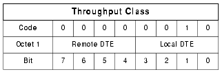 The throughput class for transmissions from the remote DTE is represented in the high nibble of the octet in the parameter field. The throughput class for transmissions from the local DTE is indicated in the low nibble.