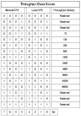The two groups of four bits referring to throughput class are binary coded and indicate the throughput classes as follows: