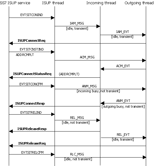 When isupdemo is run, the following call setup and call release processes take place: